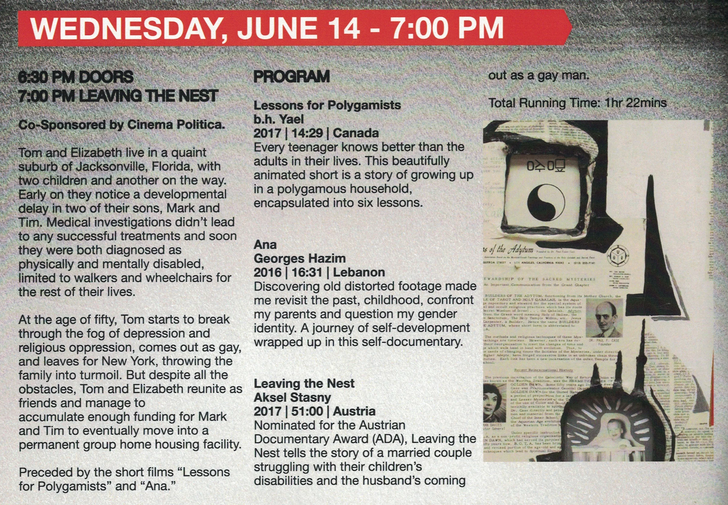 Lessons for Polygamists also screened at The Toronto Queer Film Festival on June 14, 2017.
